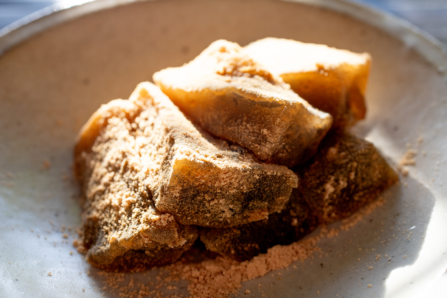■ 妥協なき、本物の追求。 希少な本わらび粉を贅沢に使い、熟練の技で丹念に練り上げたその漆黒の輝き。 口に含んだ瞬間に広がる、力強くも滑らかな弾力。そして、すっと喉を通り過ぎる瞬間の、潔いまでの「静寂(しじま)」。 これこそが、古来より愛されてきた「本物」だけが持つ醍醐味です。